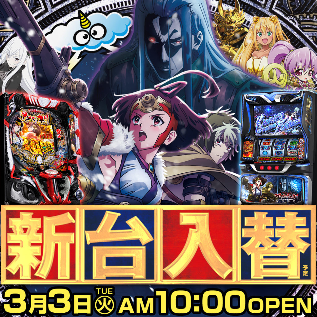 今回の新台入替はこちら! ご来店お待ちしております!